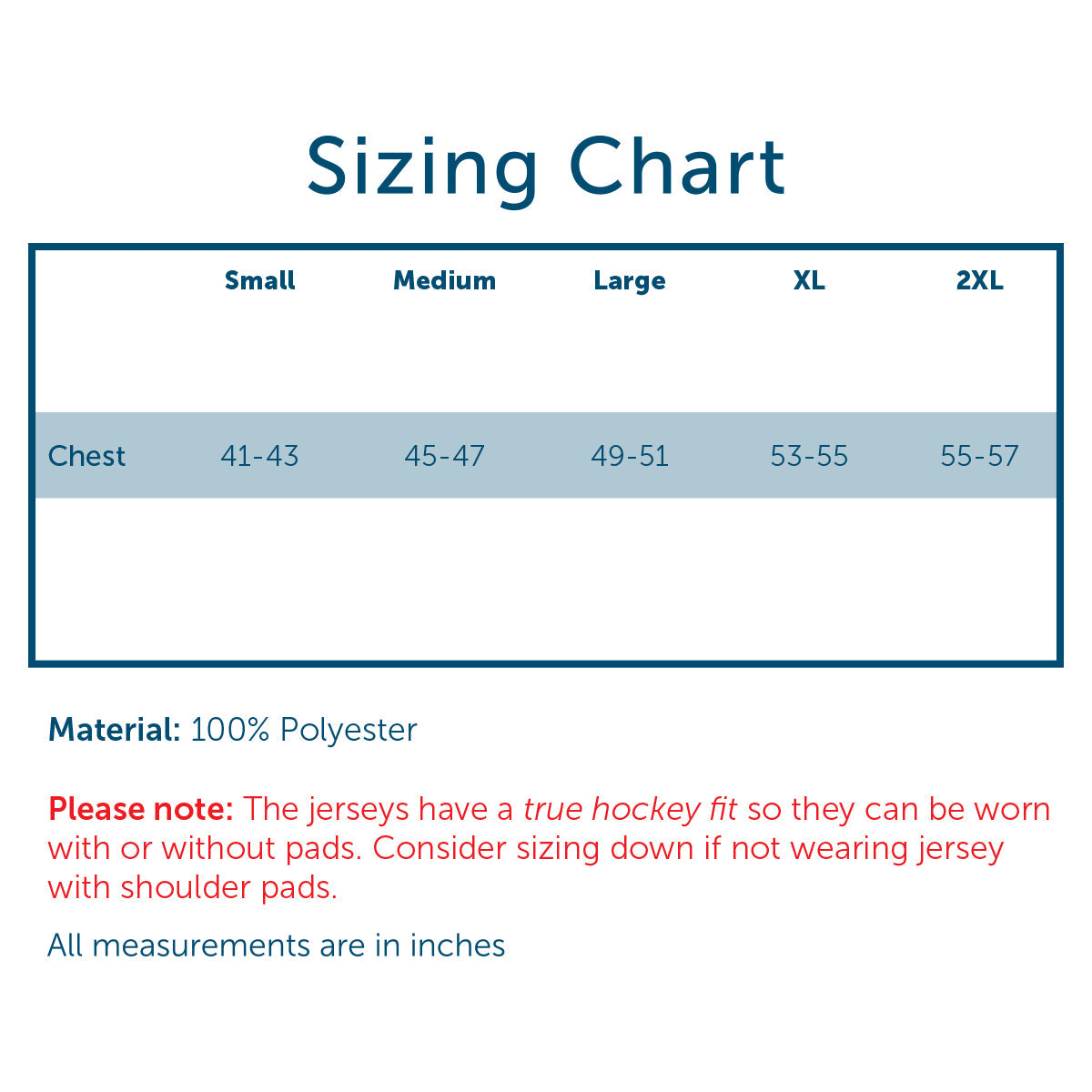 The jerseys have a true hockey fit so they can be worn with or without pads. Consider sizing down if not wearing jersey with shoulder pads.